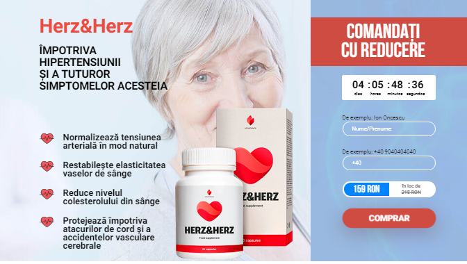 Herz&Herz este un supliment natural revoluționar, dezvoltat cu o formulă puternică cu efect direct pentru a ajuta organismul să mențină o bună sănătate cardiovasculară. Desi a fost disponibil la vanzare in Romania recent, Herz&Herz de pareri si recenzii pozitive au intalnit deja multe, dovada deja numeroasele recenzii din forumurile online, care se ocupa de produse naturale pentru sanatatea inimii.